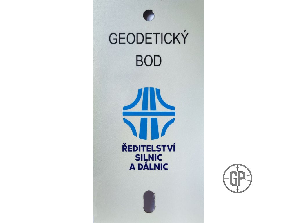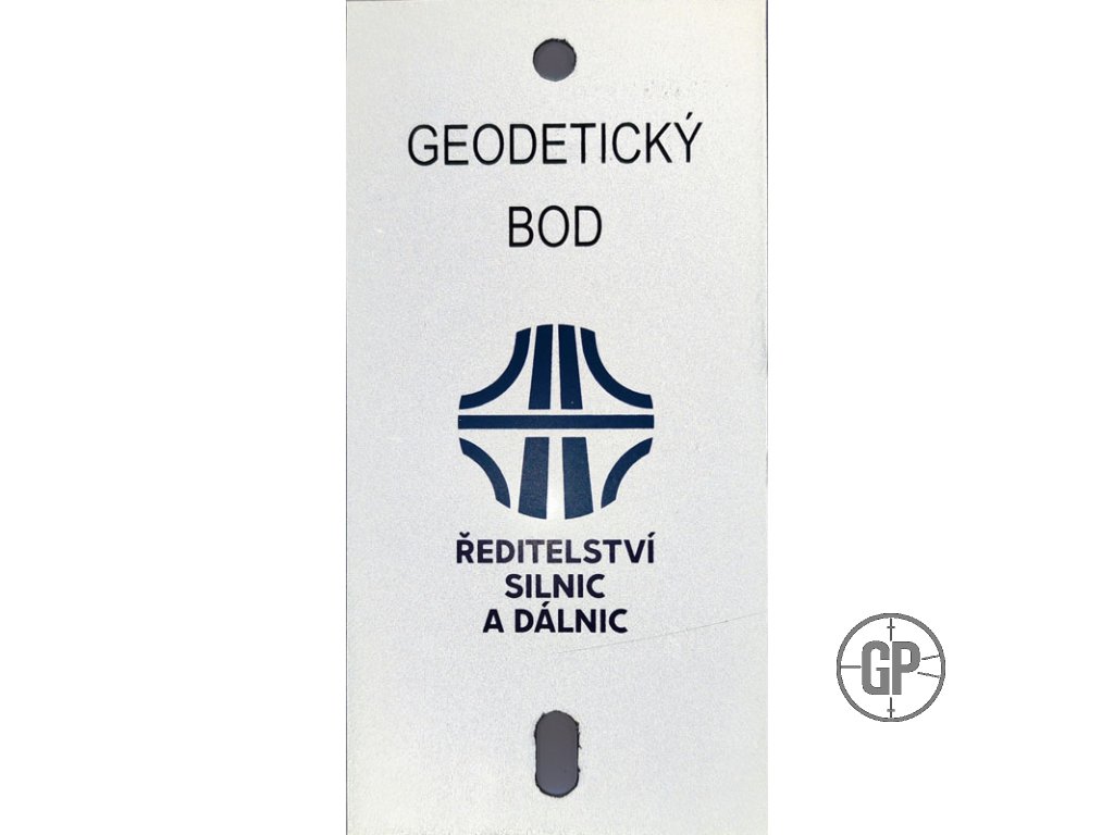 Geodetický bod s logem a nápisem Ředitelství silnic a dálnic